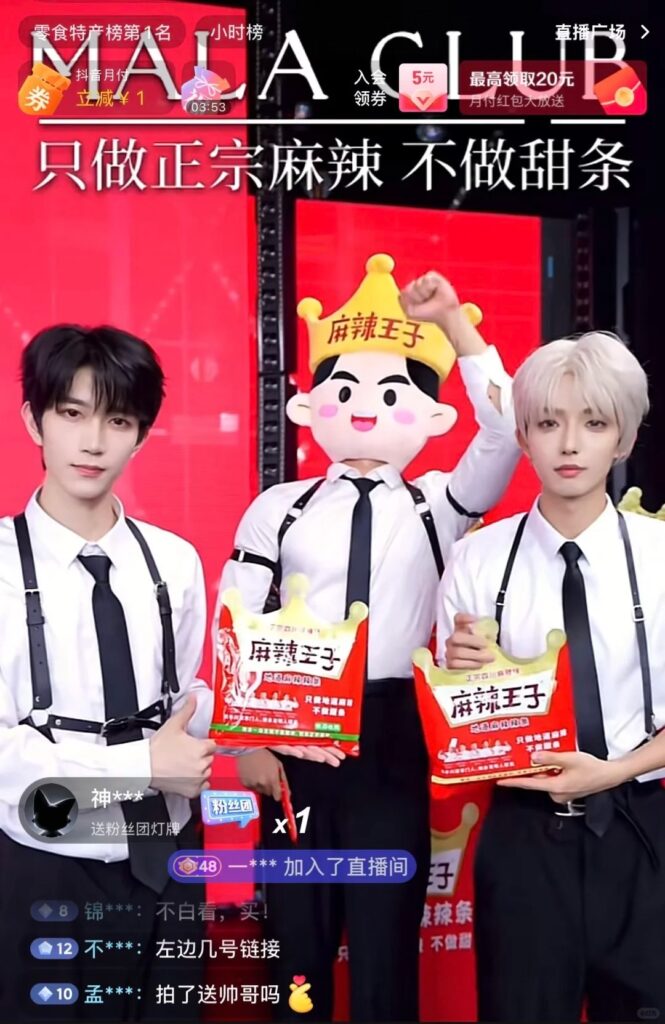 品牌如麻辣王子×男团“宇宙009”直播,观看量300万+,辣条销量暴增破圈!