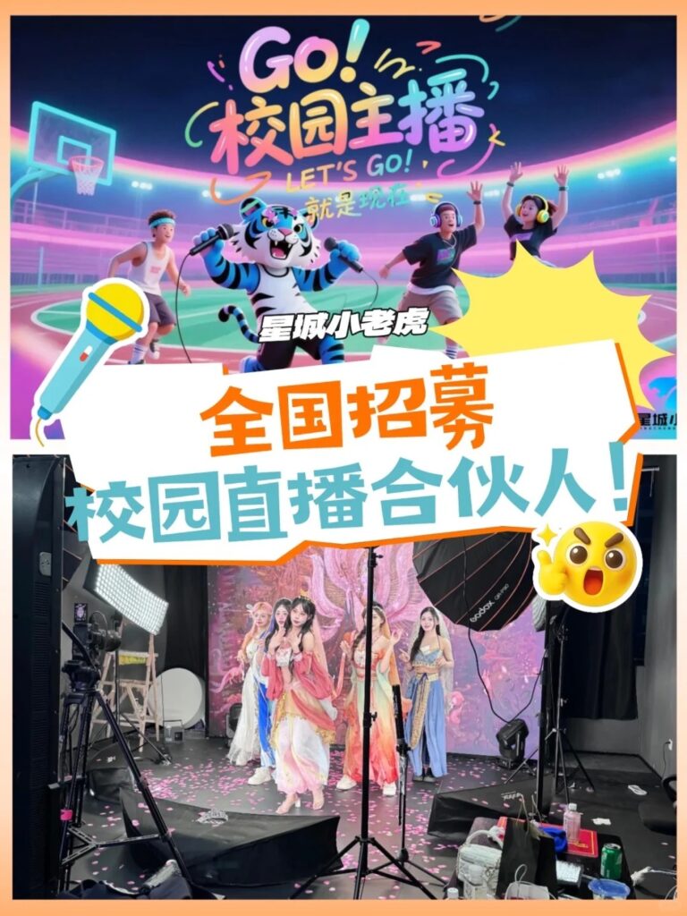 就是与小老虎联合经营一家校园直播基地。你只需要招募校园主播,搭建属于自己的团队。其他运营变线🧵都交给小老虎。